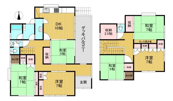 階数 区分 広さ 1F DK 10.0帖 1F 洋 7.0帖 1F 和 7.0帖 1F 和 5.0帖 2F 洋 7.0帖 2F 和 7.0帖 2F 和 5.0帖 2F S 2.5帖 - 駐車場