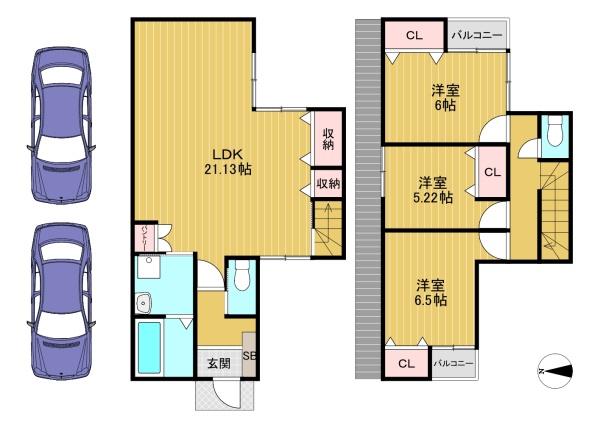 延床面積:91.94平米(1F:51.03平米、2F:40.91平米)