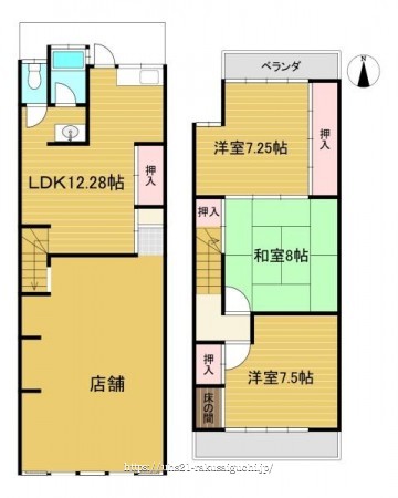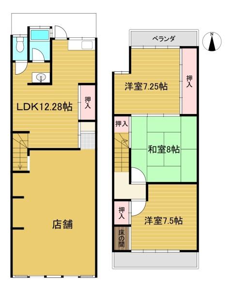 階数 区分 広さ 1F LDK 12.3帖 2F 和 8.0帖 2F 洋 7.5帖 2F 洋 7.3帖 - 駐車場