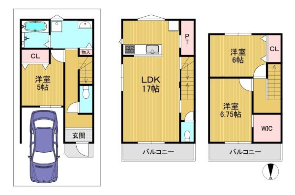 延床面積:95.22平米(1F:28.98平米、2F:35.19平米、3F:31.05平米)