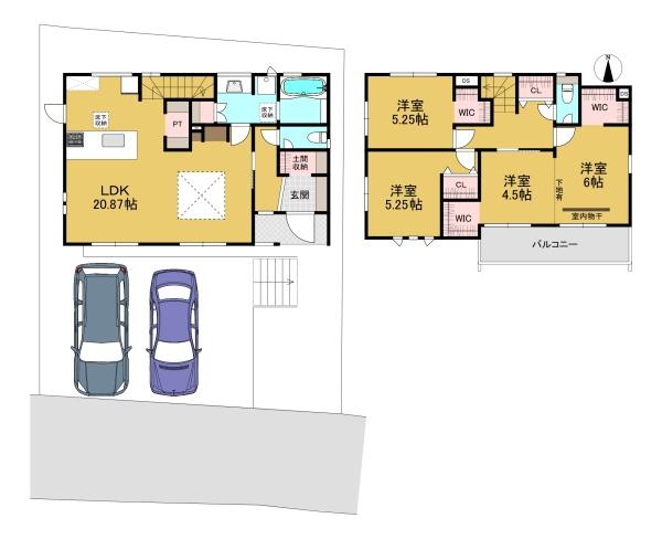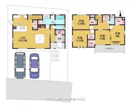 階数 区分 広さ 1F LDK 20.9帖 2F 洋 10.5帖 2F 洋 5.3帖 2F 洋 5.3帖 - 駐車場