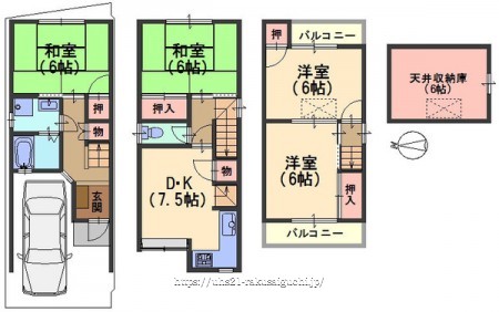 階数 区分 広さ 1F 和 6.0帖 2F DK 6.0帖 2F 和 7.5帖 3F 洋 6.0帖 3F 洋 6.0帖 - リフォーム